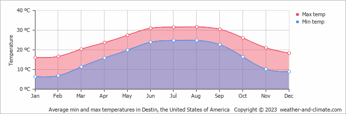 Keep in mind that these are average temperatures, and actual weather conditions can vary from year to year. Additionally, Destin experiences occasional rain showers and thunderstorms, especially during the summer months.